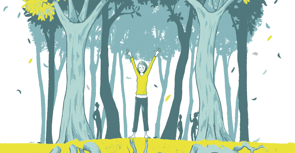 Nous avons souhaité montrer en une illustration le lien qui unit la nature à l’homme et les bienfaits régénérateurs de la forêt…